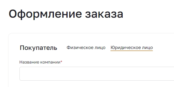 Оформите заказ, выбрав статус юридического или физического лица
